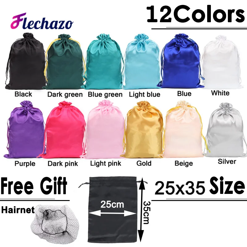 Satin Wig Storage Bag Sac De Rangement Perruque 3Pcs Customized Wig Bags Packagi